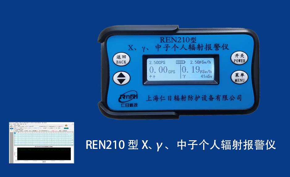 REN210 個人計量報警儀REN210型X、γ、中子個人輻射報警儀內(nèi)置SiPM和鋰玻璃晶體組成中子探測器儀器,采用反照率方式探測中子射線,同時也能探測X、γ射線。因此它可同事監(jiān)檢測X、γ、中子三種射線。能顯示工作場所的劑量當(dāng)量率和累積劑量,更換電池時,日期及累積數(shù)據(jù)能永久保存。可選配RenRiPersonal個人劑量管理軟件,該軟件可存儲多個人的歷史數(shù)據(jù),能記錄日累積、月累積、年累積、輻照時長、計算平均劑量率、扣除或不扣除本底輻射,且以文字和圖譜的方式展現(xiàn)數(shù)據(jù)。廣泛應(yīng)用于環(huán)保、化工、水泥、煤礦、土木工程、石油、醫(yī)院、疾控、進(jìn)出口商檢、核電、加速器、機(jī)場、中子源庫和其他安檢、邊境控制海關(guān)檢測等領(lǐng)域中的工作人員進(jìn)行個人安全防護(hù)監(jiān)測及放射性提示。